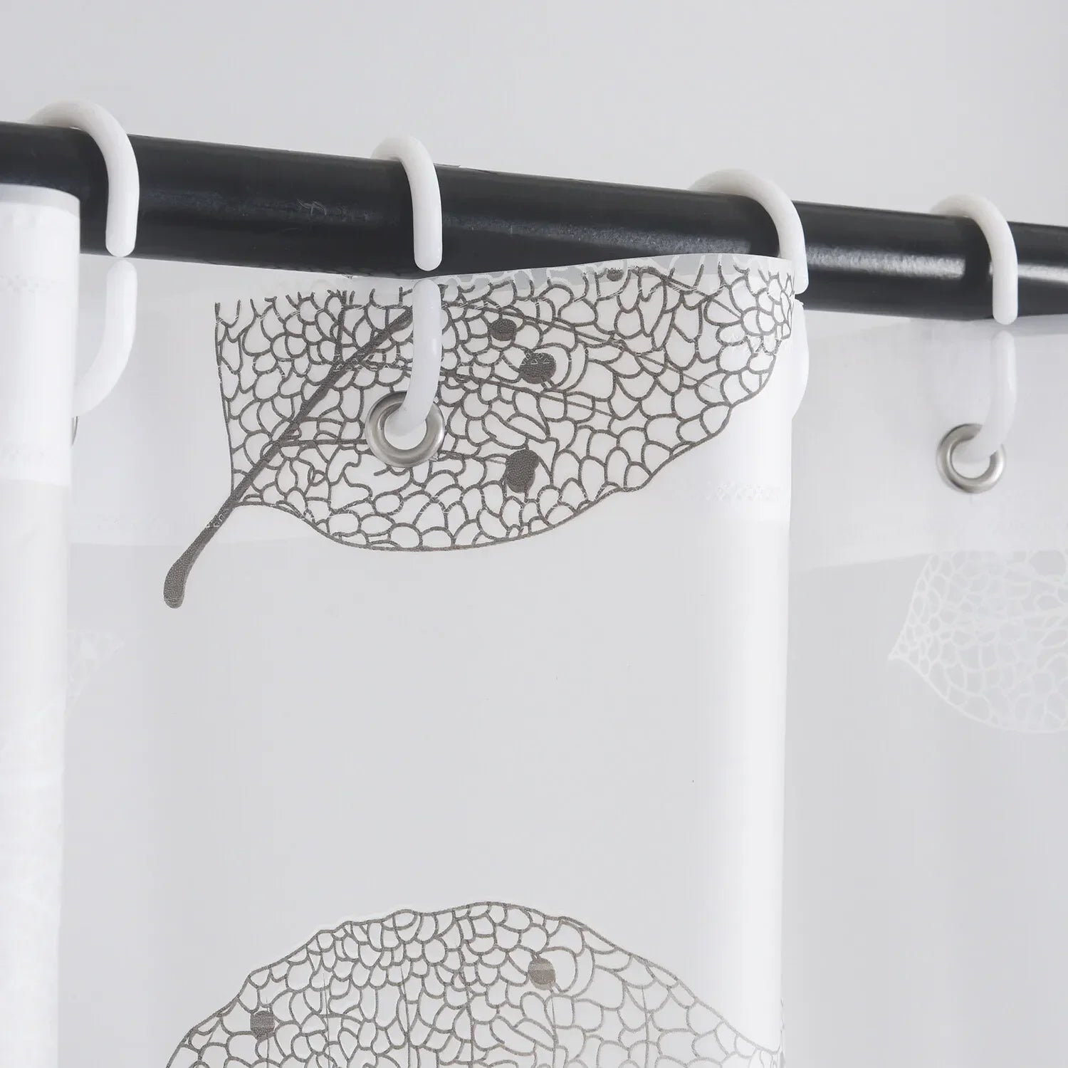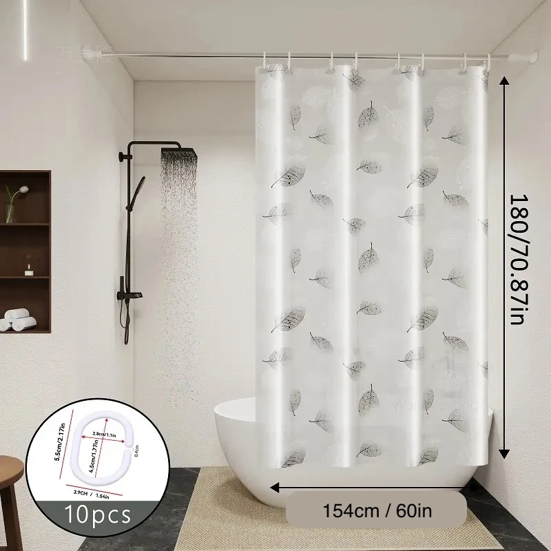 1pc Leaf Pattern Plastic Shower Curtain, Lightweight Bath Curtain Liner with Plastic Hooks, Transparent Curtain, Bathroom Decor