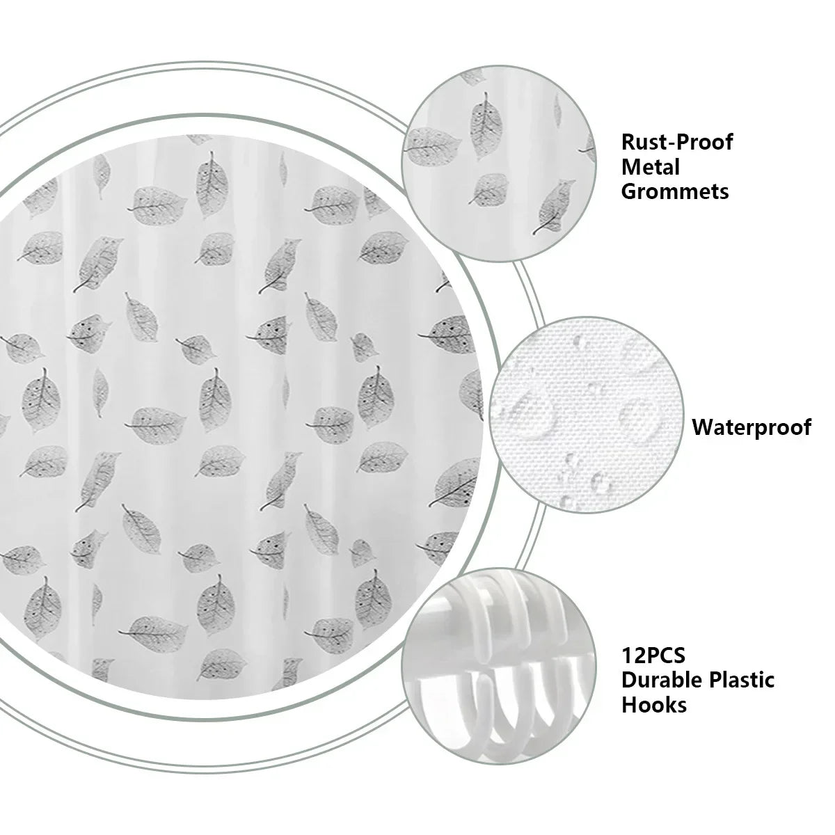 Plastic Leaf Printed Shower Curtain